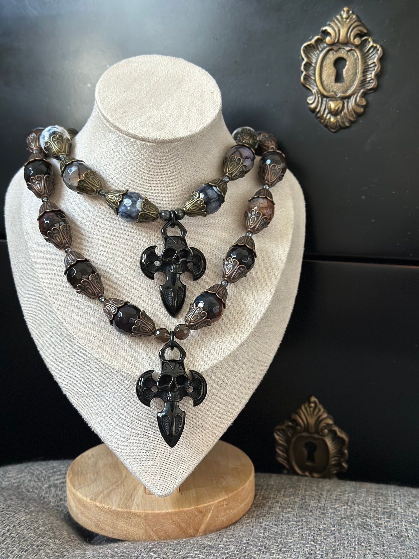 Dragon Vein Agate Skull Dagger Necklace