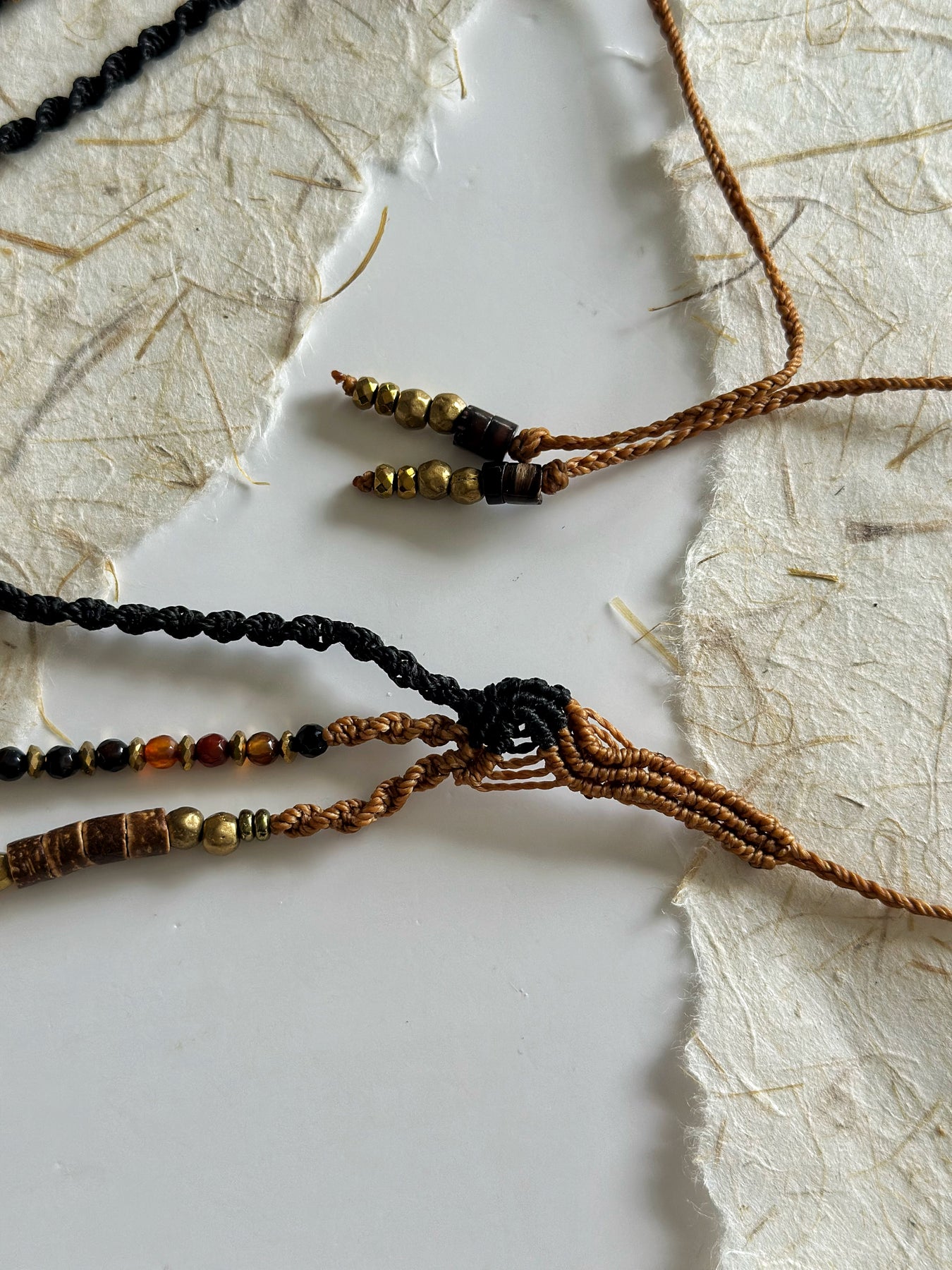 Micro macrame technique, coconut wood, brass, red coral, red agate, adjustable