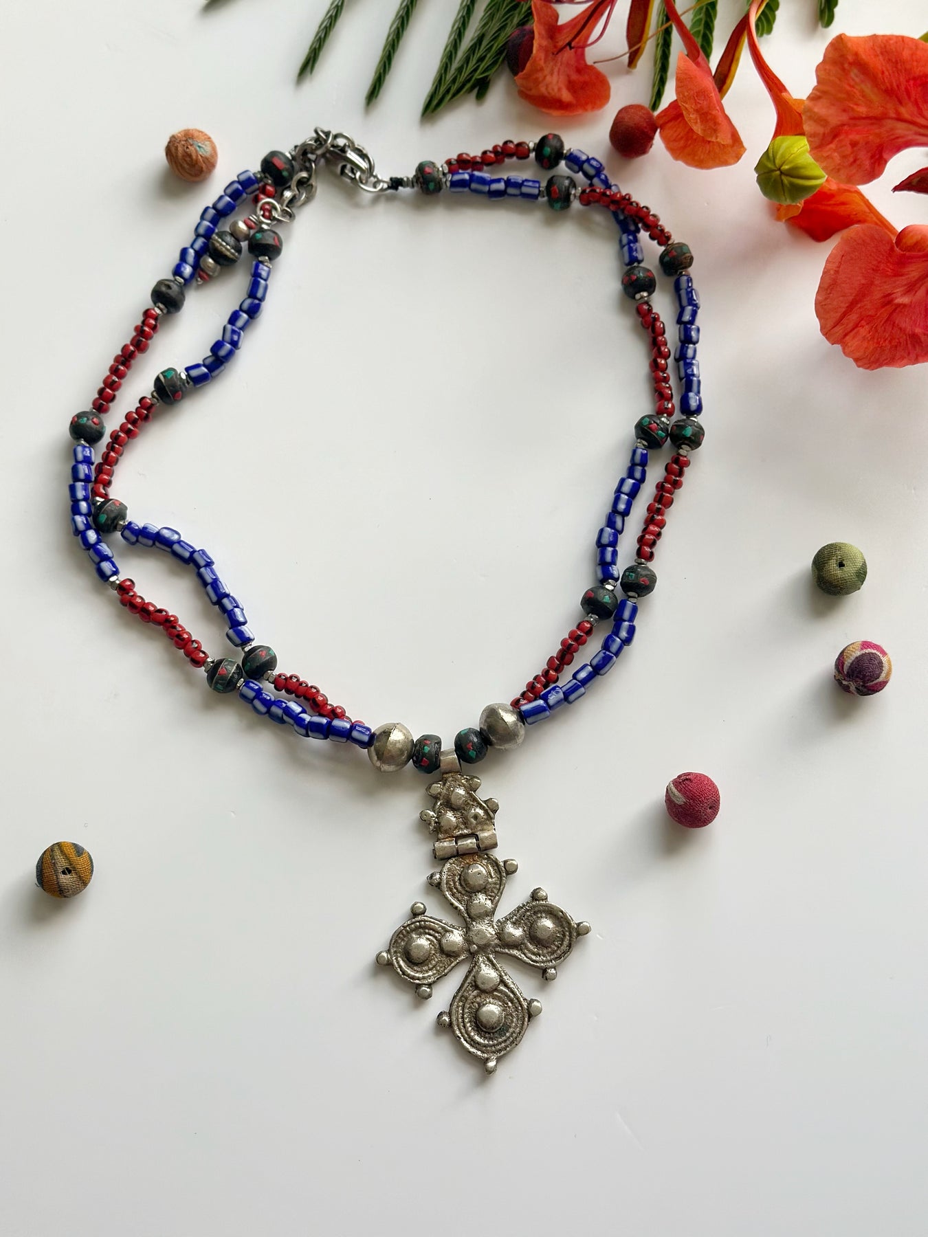 Ethnic Necklace with Czech beads and vintage Ethiopian pendant